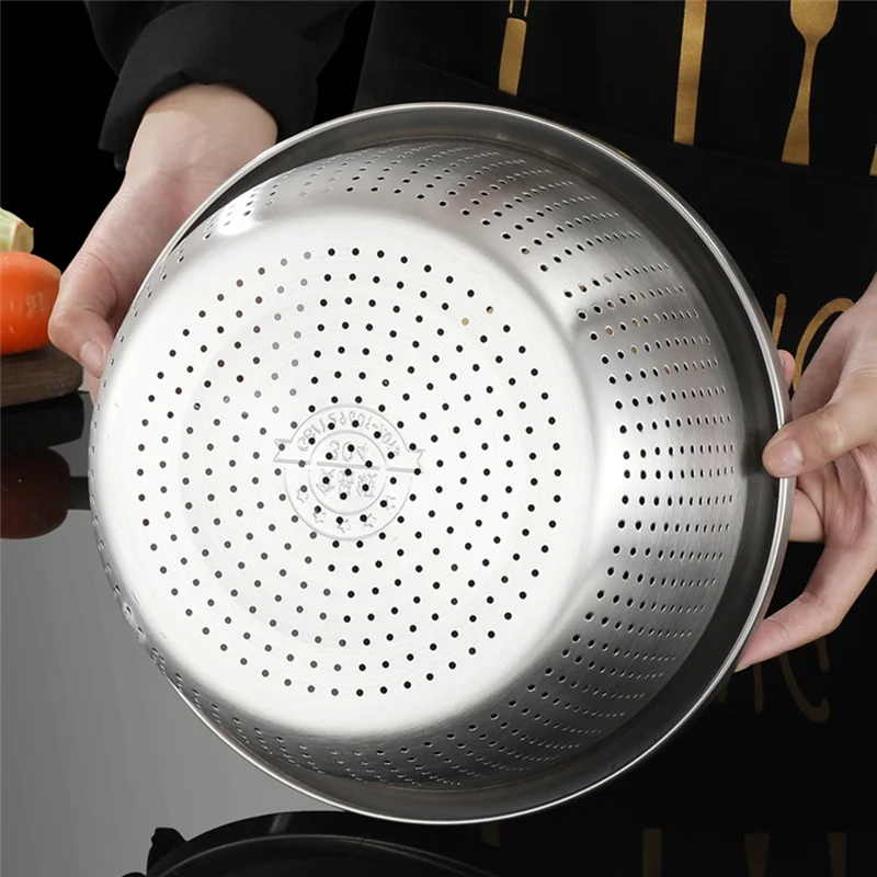 Stainless Steel Drain Basket Colander Round Rice Cleaning Sieve Fruit Vegetable Washing Basin Strainer Filter Kitchen Utensils